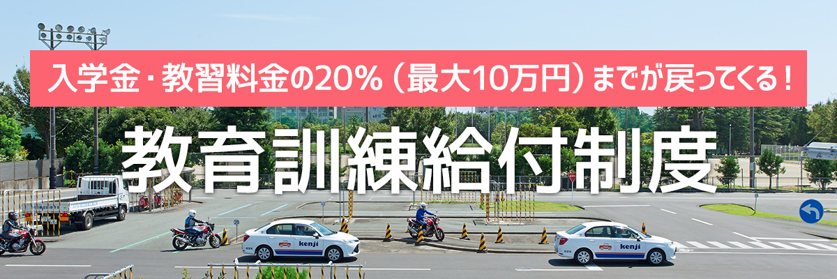「教育訓練給付制度」とは、雇用の安定と再就職を促進するため、資格や免許の取得を国がバックアップし、受講費用の一部を支給する雇用保険の給付制度です。厚生労働大臣が指定したコースを受講し、修了後に申請すると、入学金・教習料金の20%(最大10万円)までが支給される制度です。