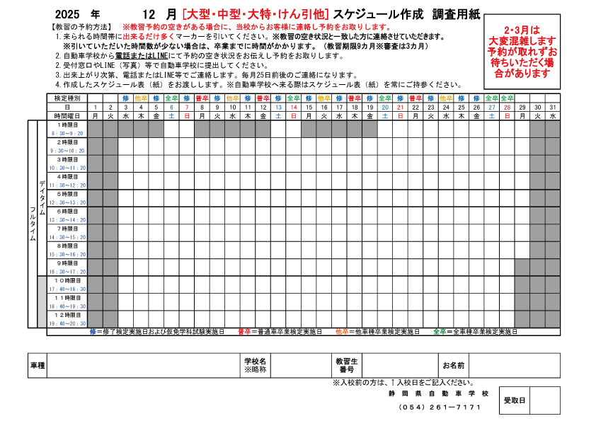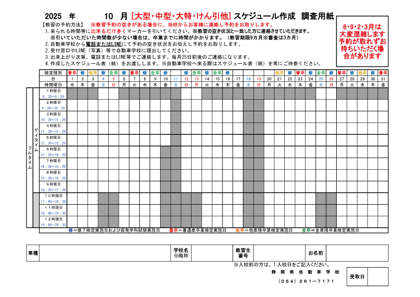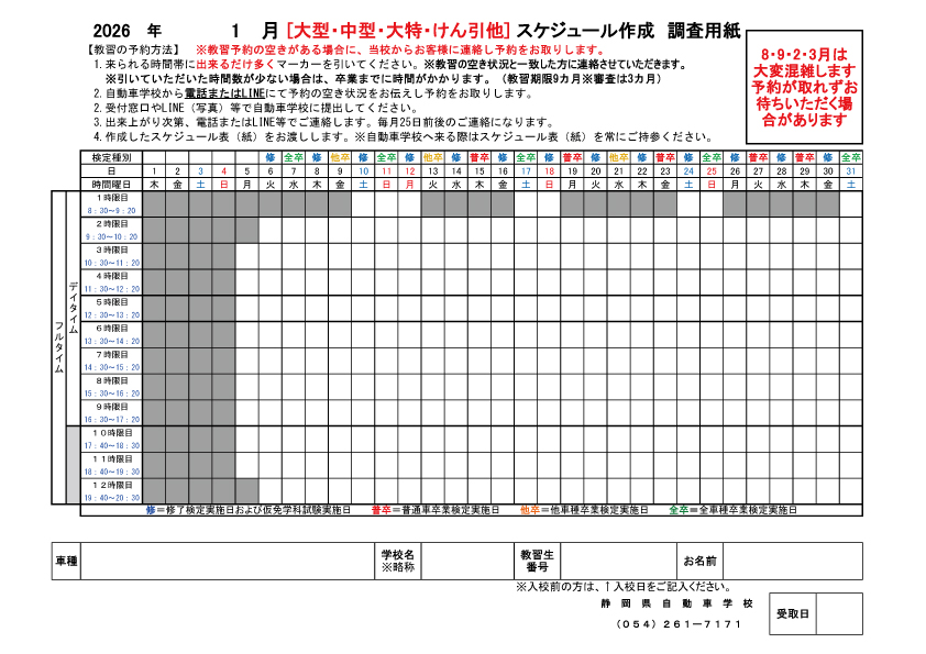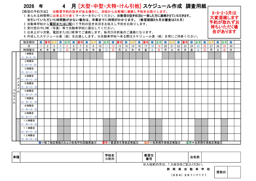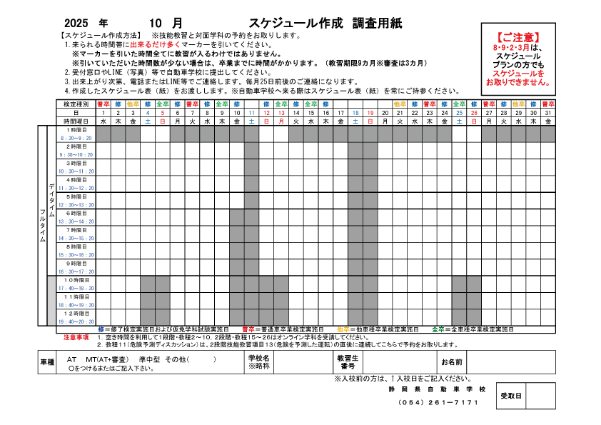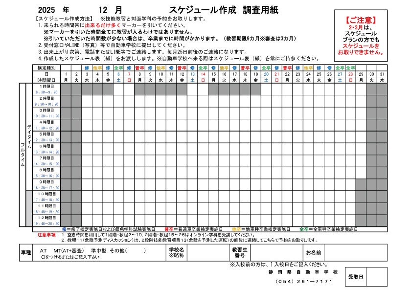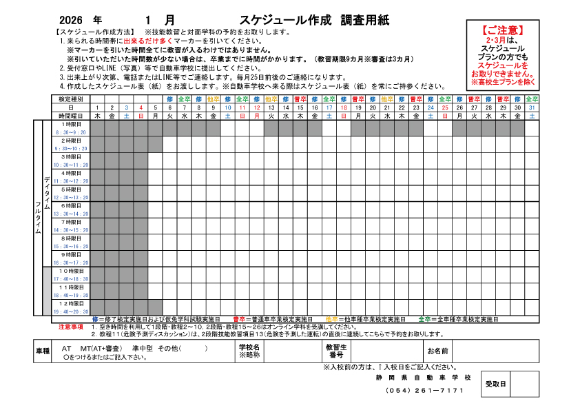 必ず名前を記入し、来られる時間に出来るだけ多くマークしてください。