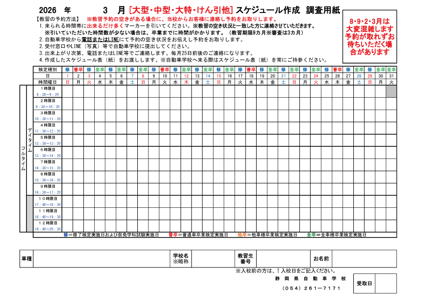 スケジュールプランの方でも2・3月はスケジュールをお取りすることが出来ません。