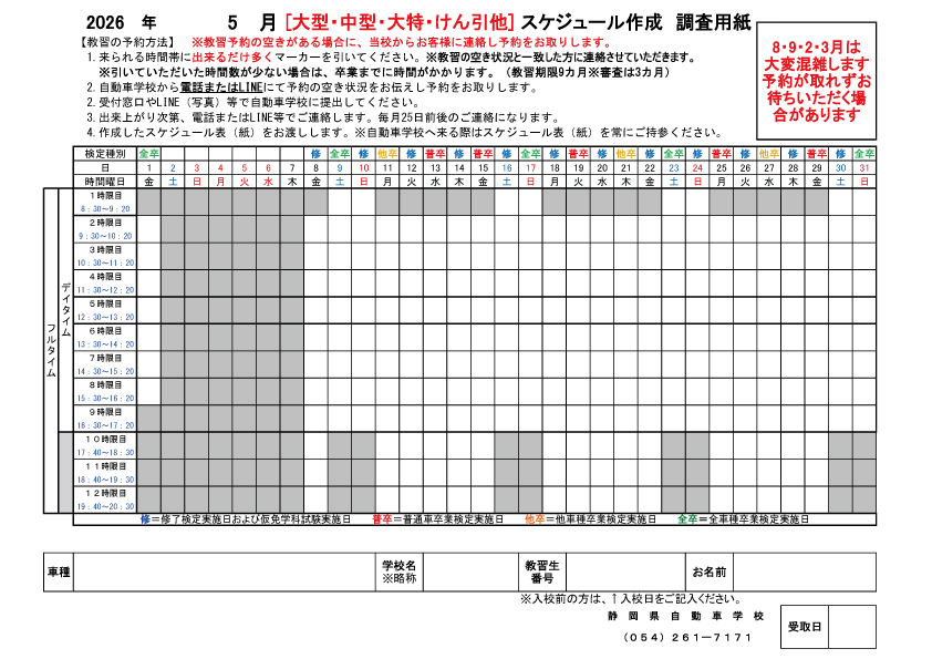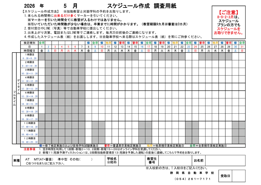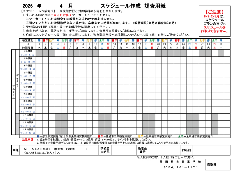 ※来られる日時が少ないほど卒業までに時間がかかります。