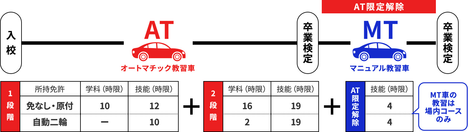 入校から卒業までにかかる必要最低限の料金に、「技能5時限・検定保証」オプション料金が含まれています。技能5時限保証で技能教習が規定時限数で修了しない場合の追加技能教習料金5時限分を保証します。また、検定保証で技能検定不合格時の補修教習料1時限分と再検定料について2回目以降保証します。ただし、お客様ごとの事情によりその他の追加料金が発生する場合があります。 デイタイム限定:1時限目から9時限目までの技能教習が受講できます。10時限以降の技能教習時限はご利用出来ません。