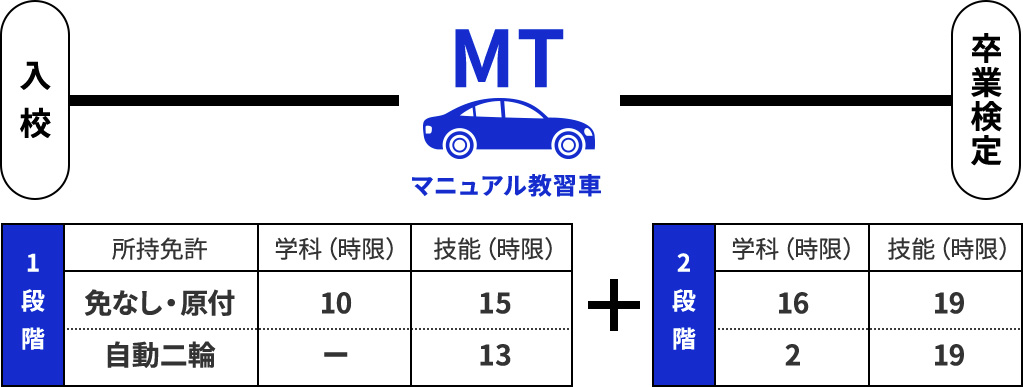 入校から卒業までにかかる必要最低限の料金が含まれたプランです。お客様ごとの事情により追加料金が発生する場合があります。 デイタイム限定:1時限目から9時限目までの技能教習が受講できます。10時限目以降の技能教習時限はご利用出来ません。