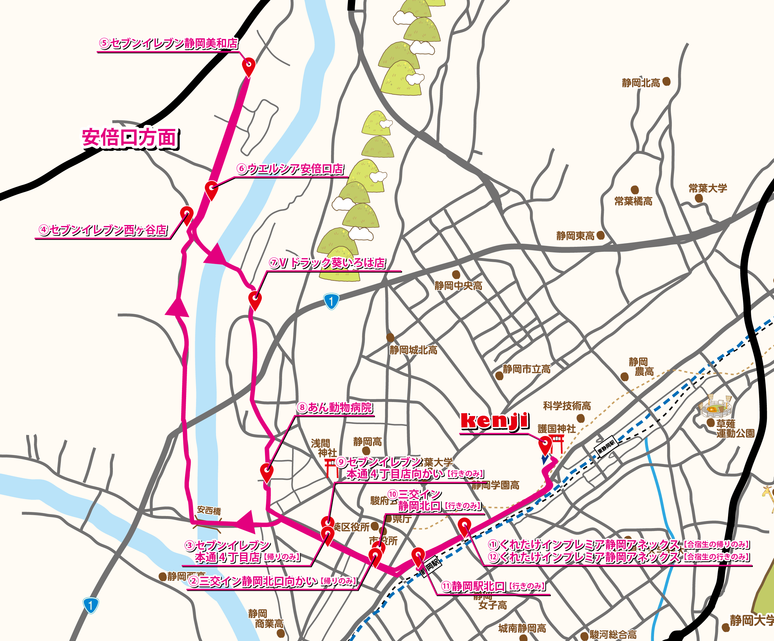 ⑫くれたけインプレミア静岡アネックス 向かい(完全予約制) 【合宿生の行きのみ】 |