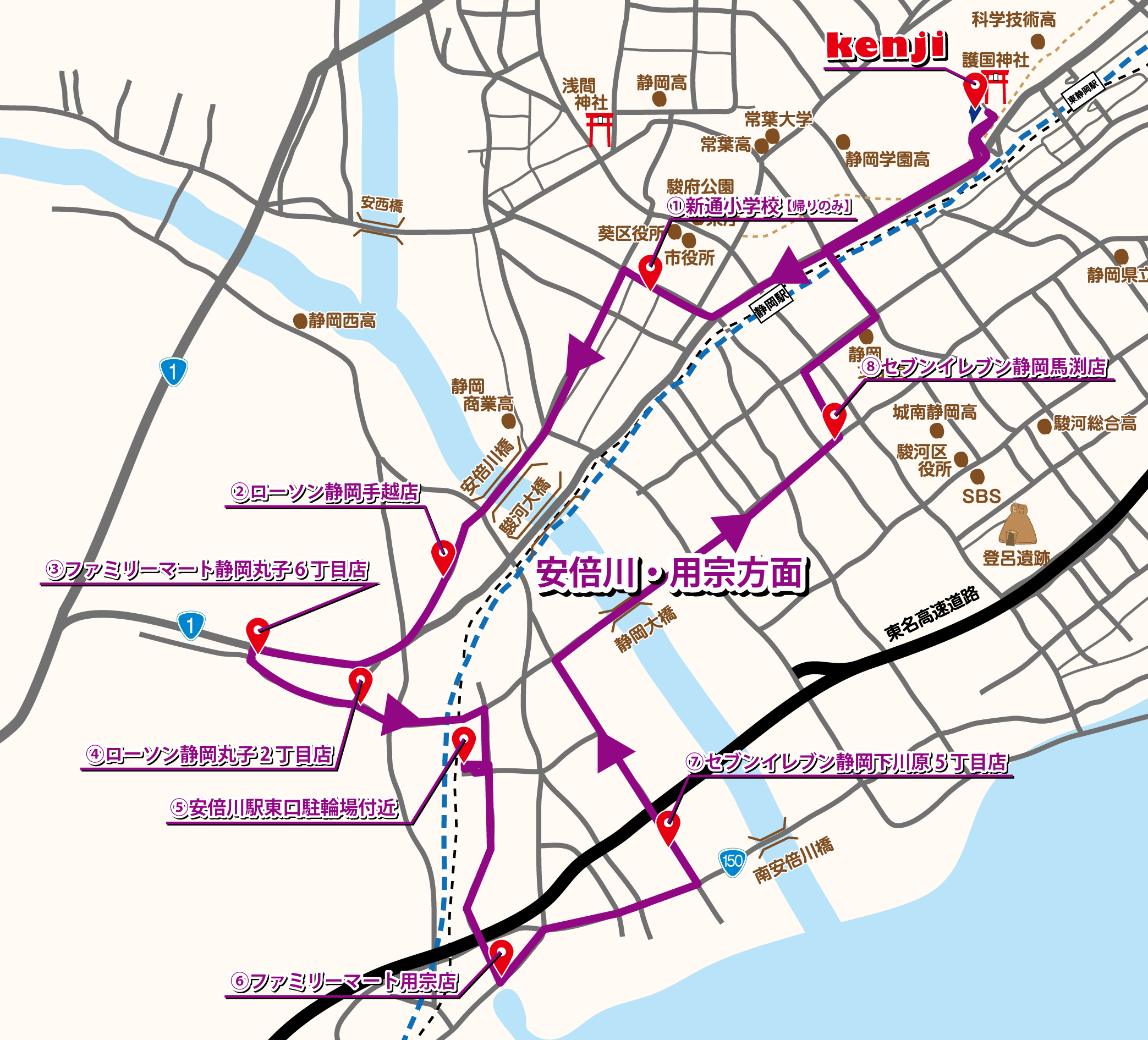 ・その他時間帯の【帰り】は、静岡駅までとなります。《静岡駅・高松方面》をご確認ください。 ・駅南方面にお住まいの方は、《静岡駅・高松方面》でも近くを通る場合がございます。 |